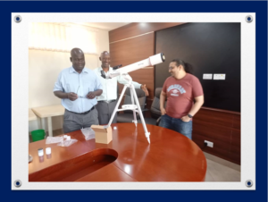 The PACS e-Lab management, in collaboration with the Jean Pierre Grootaerd SSVI program, donated a 70/700 Bresser refractor telescope to Prof. Hans Essone Obame, IAU Office of Astronomy for Education Chair for Gabon. The telescope supports teacher training and astronomy outreach in Gabonese schools. The outreach initiative was featured on national news: https://youtu.be/1yk6V3GWZmw?si=X7bUTc_1SfOWbGXs